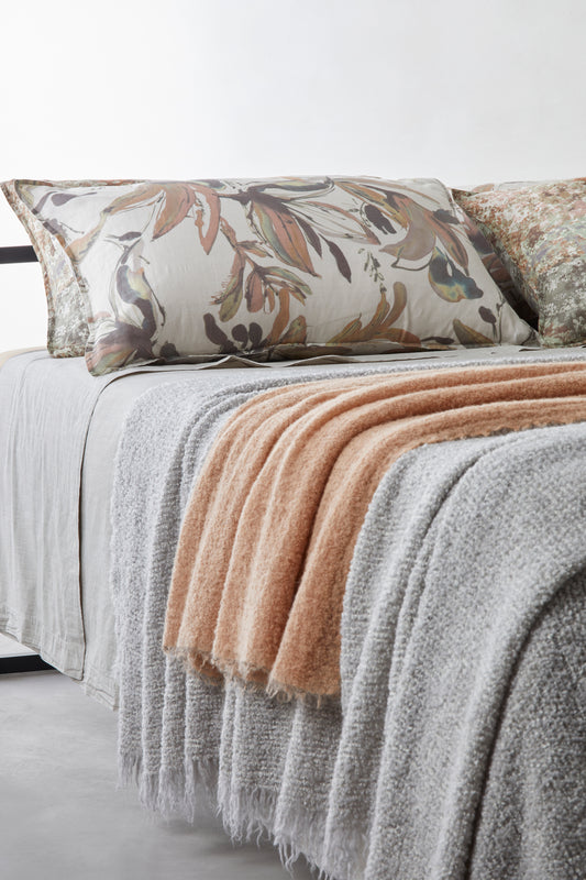 TED throw is an extremely soft, ultra-light throw in alpaca. TED throw is perfect for the bed or to wrap around yourself on the sofa for a pleasant and intangible sensation of warmth. The winter home becomes a refuge for the senses, where well-being and beauty combine together in harmony. TED throw is available in neutral colours and in the warm colours of the season, and is garment-dyed like all Society Limonta products. Garment-dyeing confers a particular quality to the fabric and a higher volume of output.