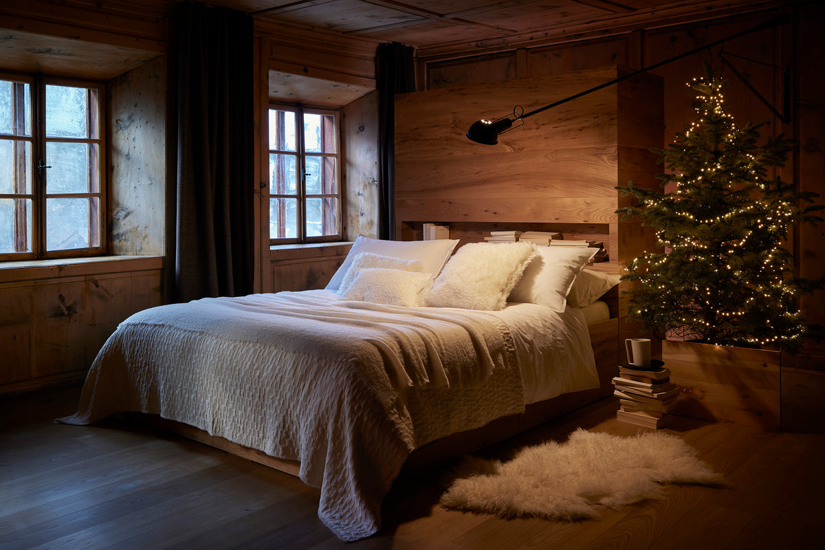 A ray of light in the heart of winter. The Christmas bed linen glows with simple elegance: the soft and cosy texture of SIRE duvet cover in pure seersucker cotton, together with the exquisite uniqueness of LAYAL blanket, in a blend of cashmere and silk, is a joyful prelude to the beginning of the new year.