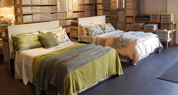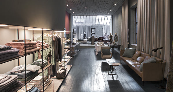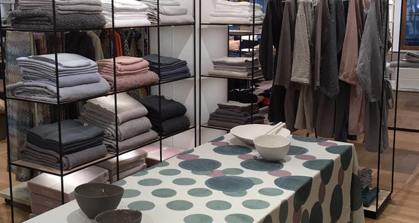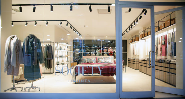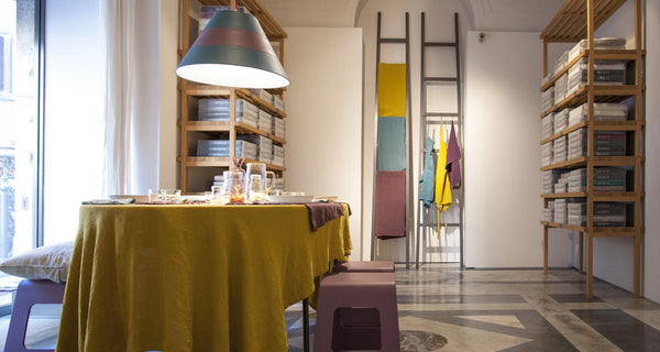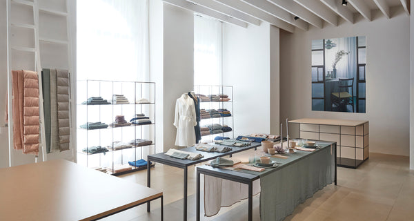 The design of the Society Limonta stores, first of all the Milan flagship store in via Palermo 1, is expressed by the creativity of the architect Ferruccio Laviani, with spaces in which textiles are the absolute protagonist. The choice of natural materials, wood and stone, in light shades, enhance the materiality of the fabrics and the colors of the collections.